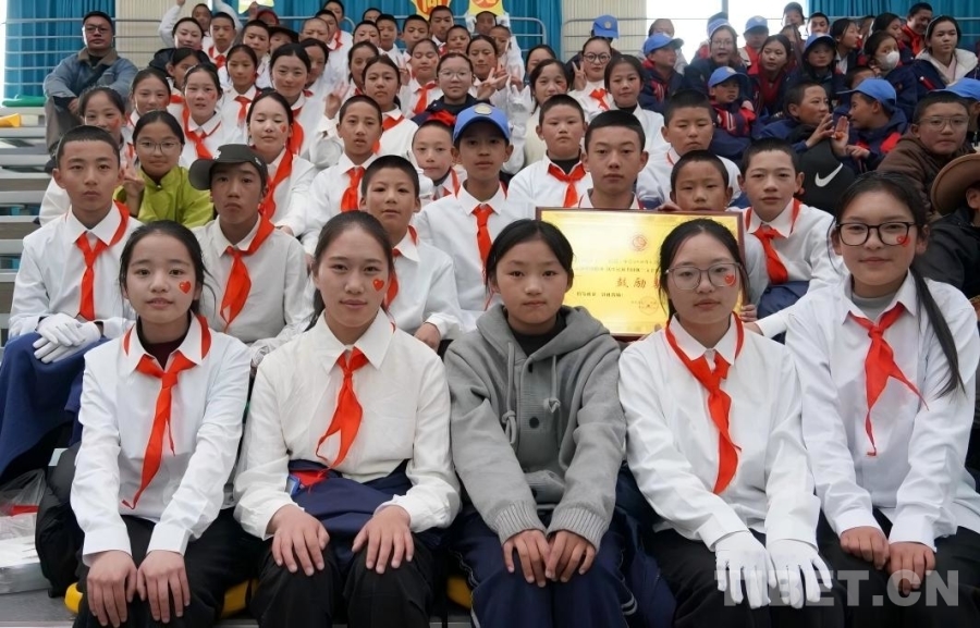 色尼区第二(杭嘉)中学举办纪念西藏民主改革67周年文艺活动,活动结束后获奖班级合影 来源:色尼融媒