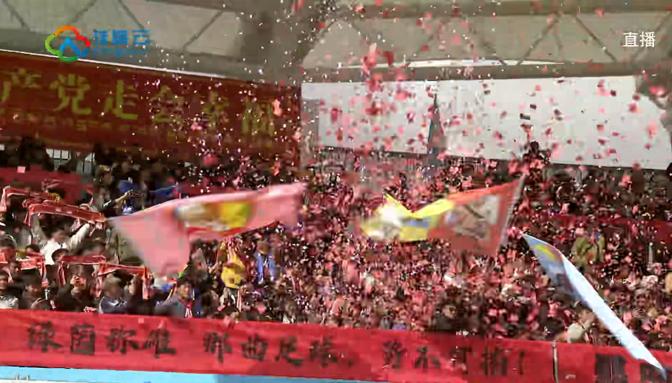 决赛现场观众席气氛热烈,球迷打出“绿茵称雄 那曲足球,势不可挡!”的助威横幅。图片来源:珠峰云