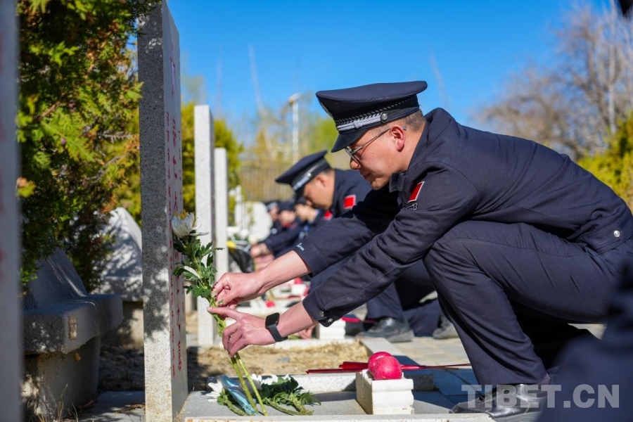 西藏日喀则边境管理支队民警向革命烈士敬献鲜花
