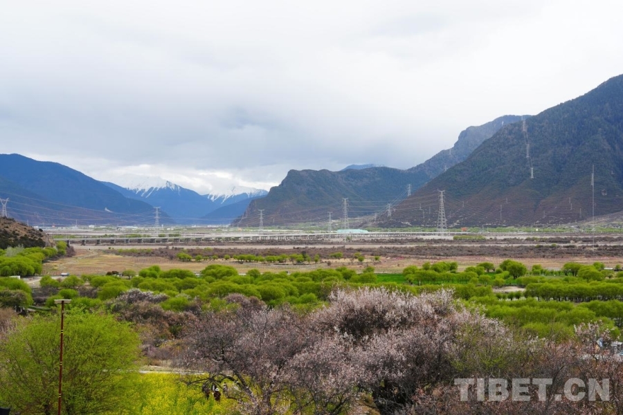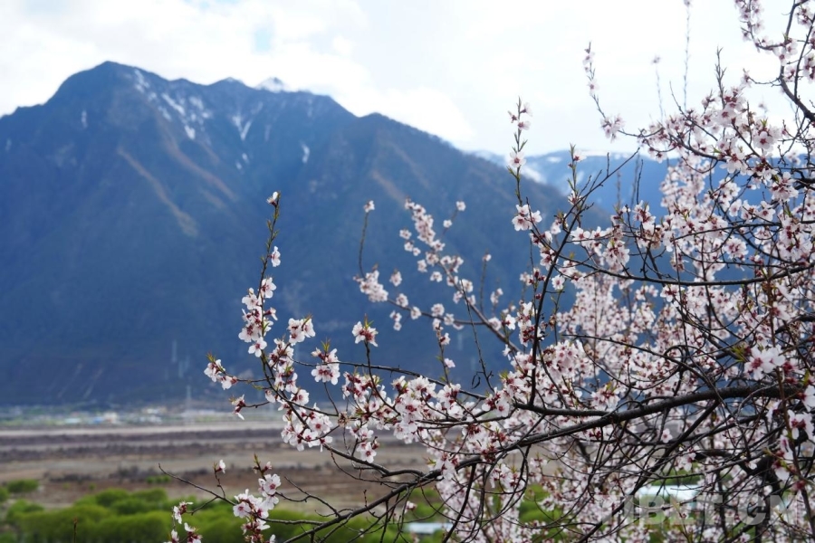 4月4日,桃林缀满河谷、雪山为幕。