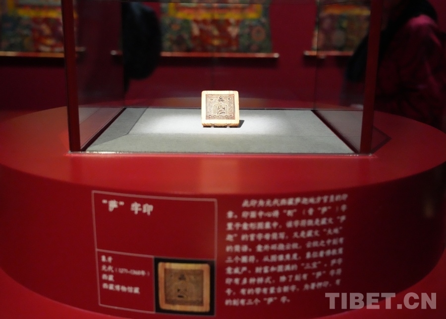 元代西藏萨迦地方官员的“萨”字印。印面中的字符是“萨迦”的首字母简写,又是藏文“大地”的简语。