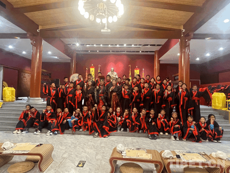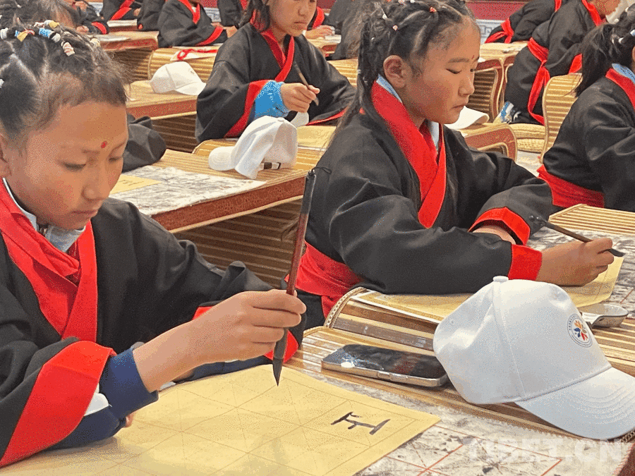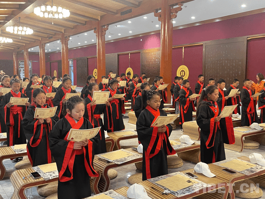 中国西藏网讯 4月22日下午,在孔子故里曲阜,一场庄重的开笔礼举行。来自西藏山南错那市的48名中小学生身着传统服饰,在司仪的引导下依次完成正衣冠、朱砂启智、启蒙描红、击鼓鸣志、拜师行礼等环节,在千年儒风的浸润中开启了对中华优秀传统文化的又一次体验。