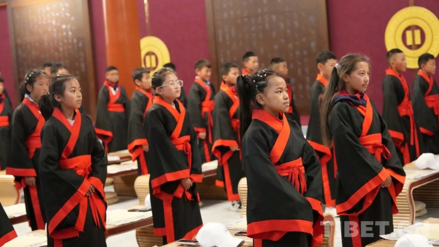 在曲阜书香研学基地,孩子们参加了开笔礼。为他们“朱砂启智”的不是陌生的礼仪官,而是最熟悉的带队老师。错那市中学教师索朗杰布穿上传统服饰,拿起毛笔,蘸上朱砂,轻轻点在每一个学生的额头。