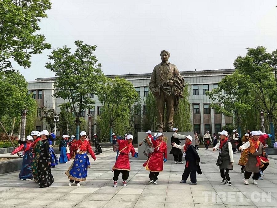 学生们在孔繁森像前跳起锅庄舞,用最质朴的方式,表达雪域高原儿女的感恩与敬意