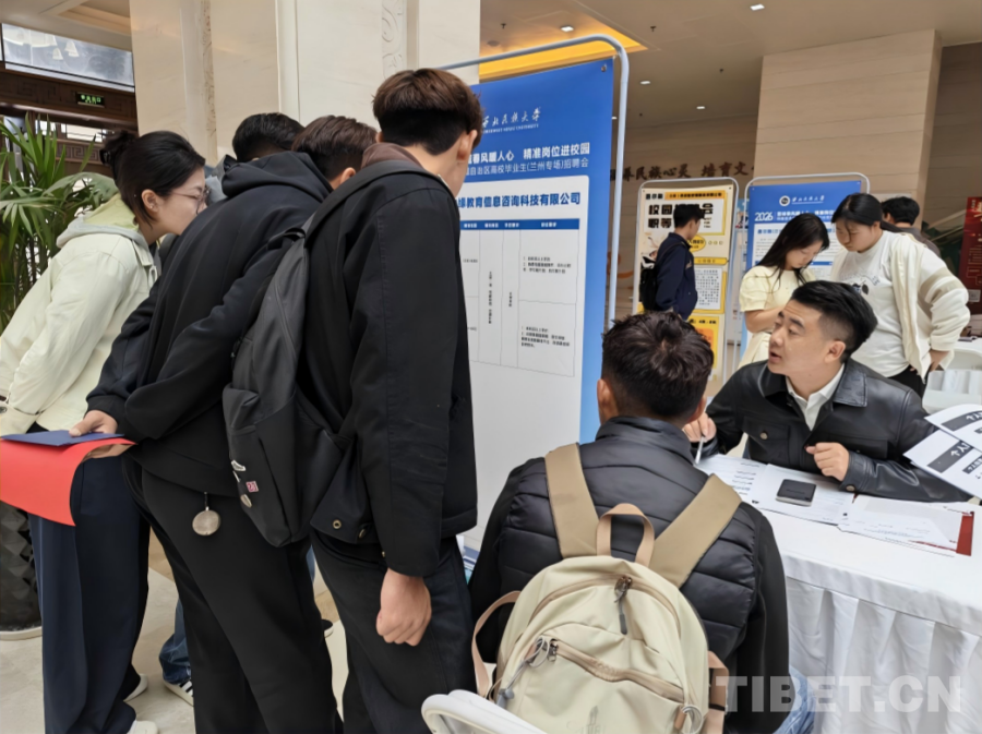 中国西藏网讯 4月27日,“雪域春风暖人心 精准岗位进校园”2026年西藏自治区高校毕业生(兰州专场)招聘会暨就业创业政策宣讲会在西北民族大学举办。