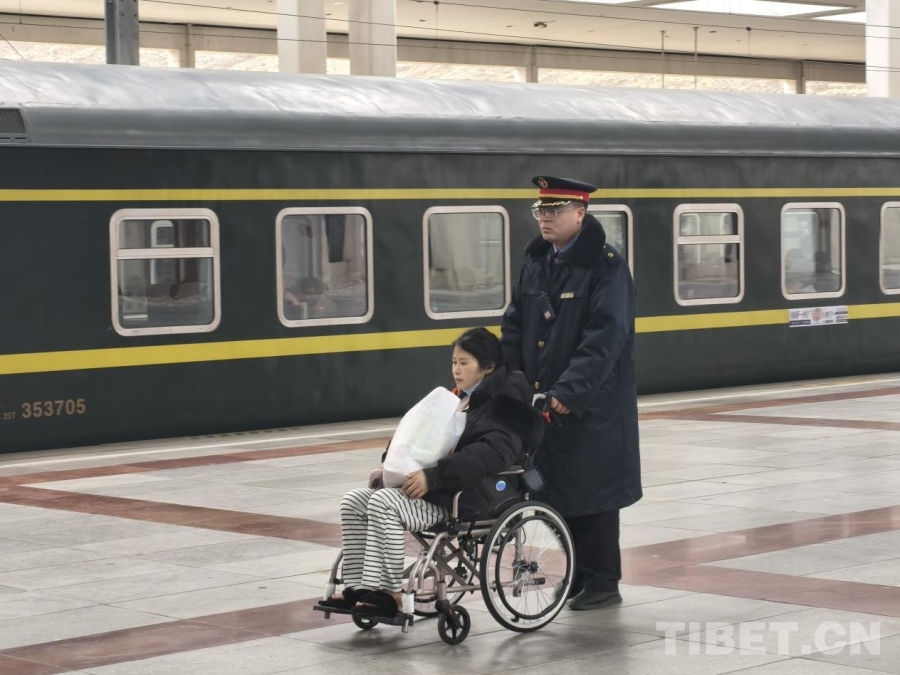 拉萨火车站工作人员帮扶旅客