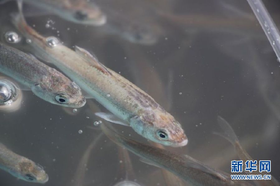 这是青海湖裸鲤鱼苗(6月6日摄)。新华社记者 周喆 摄