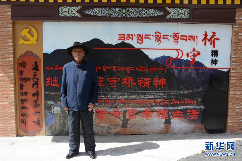 这是在玉树藏族自治州称多县歇武镇直门达通天河渡口拍摄的守桥班老班长元丁(7月25日摄)。新华社记者 柳泽兴 摄