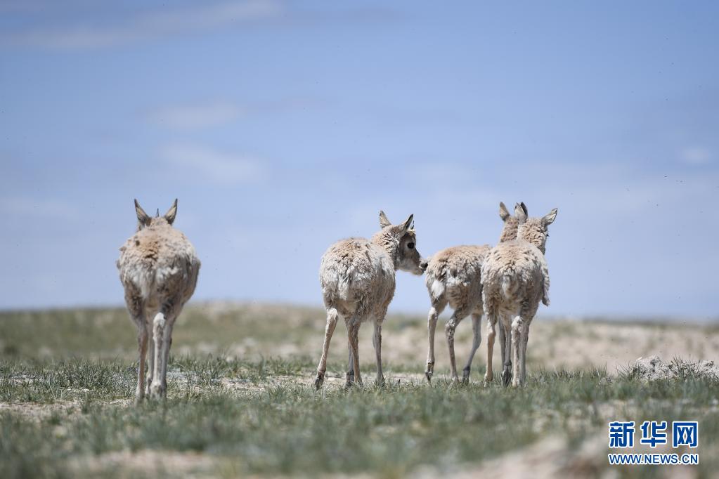 这是7月7日在可可西里拍摄的藏羚羊。新华社记者 张龙 摄