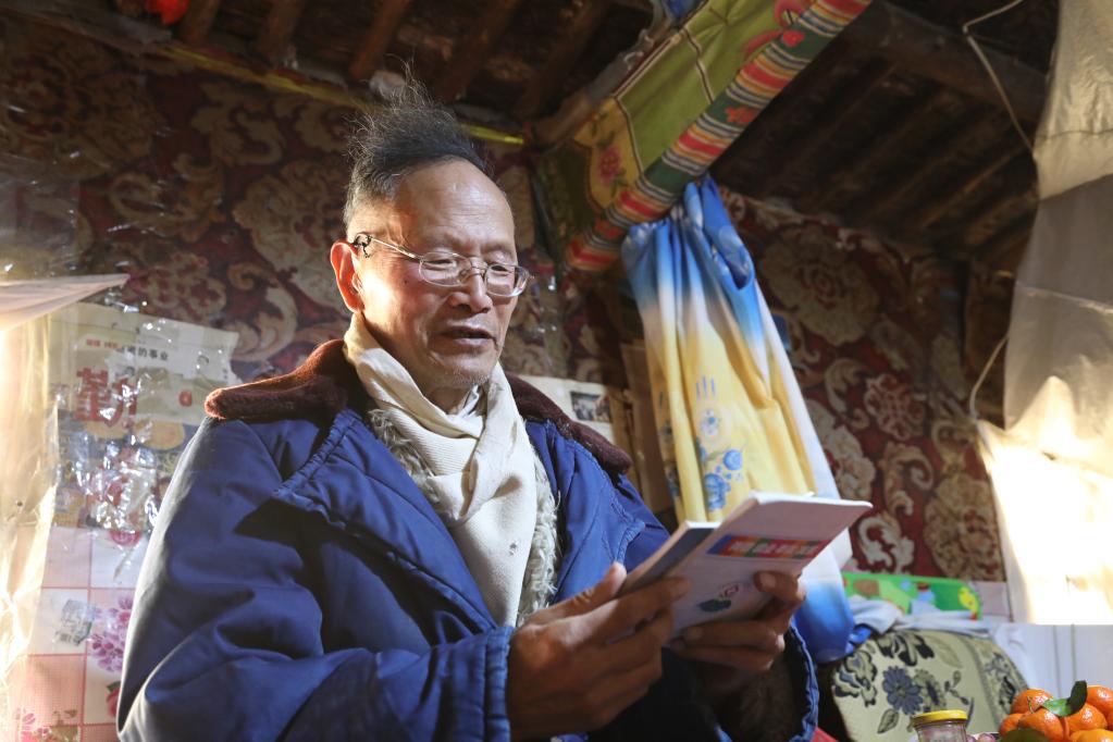 王万青在家中阅读书籍。新华社记者 马莎 摄
