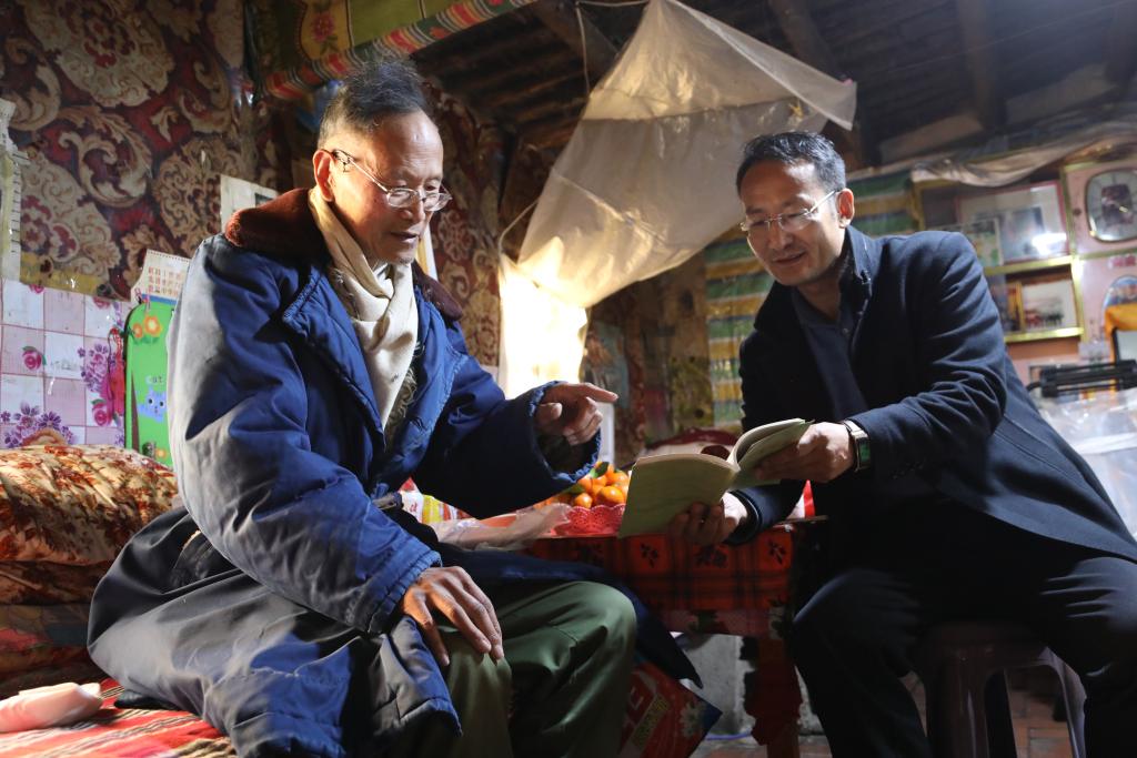 王万青与王团胜在家中聊天。新华社 马莎 摄