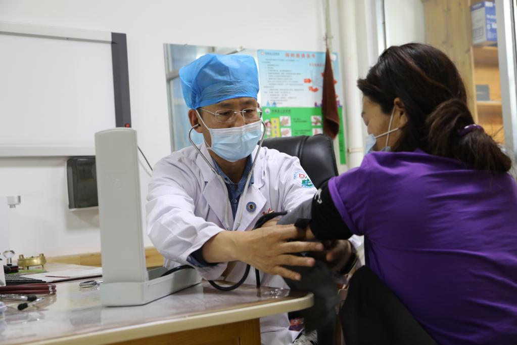 在玛曲县人民医院,王团胜为患者看病。新华社记者 马莎 摄