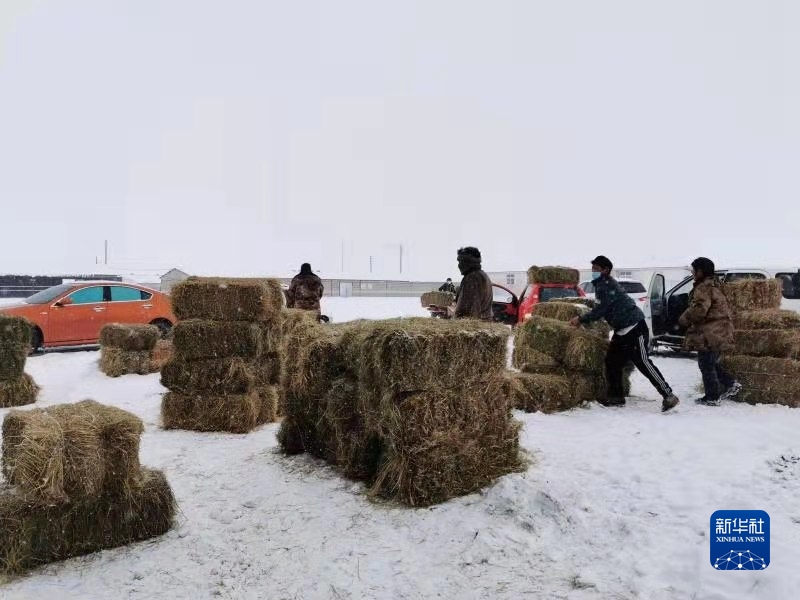 红原县瓦切乡牧民在冬季搬运储备草料喂养牲畜。新华社发