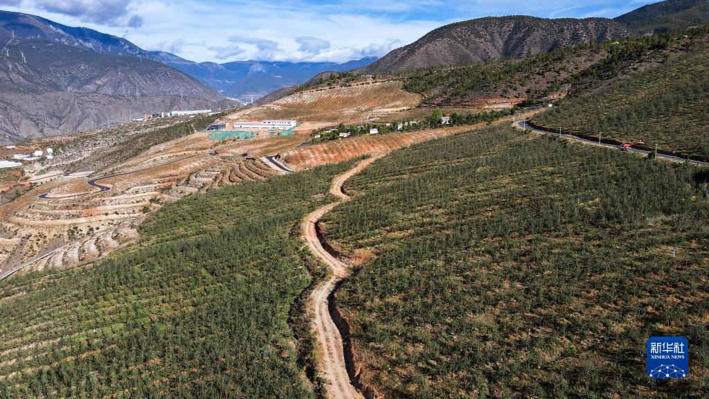 这是10月20日拍摄的四川甘孜乡城县青德镇万亩果园一角(无人机照片)。新华社记者 胥冰洁 摄