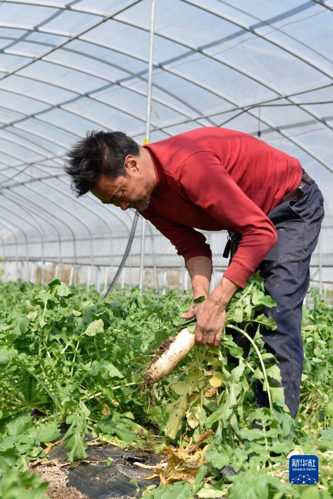 10月25日,村民在位于西地村的生态农业示范基地内拔萝卜。新华社记者 胥冰洁 摄