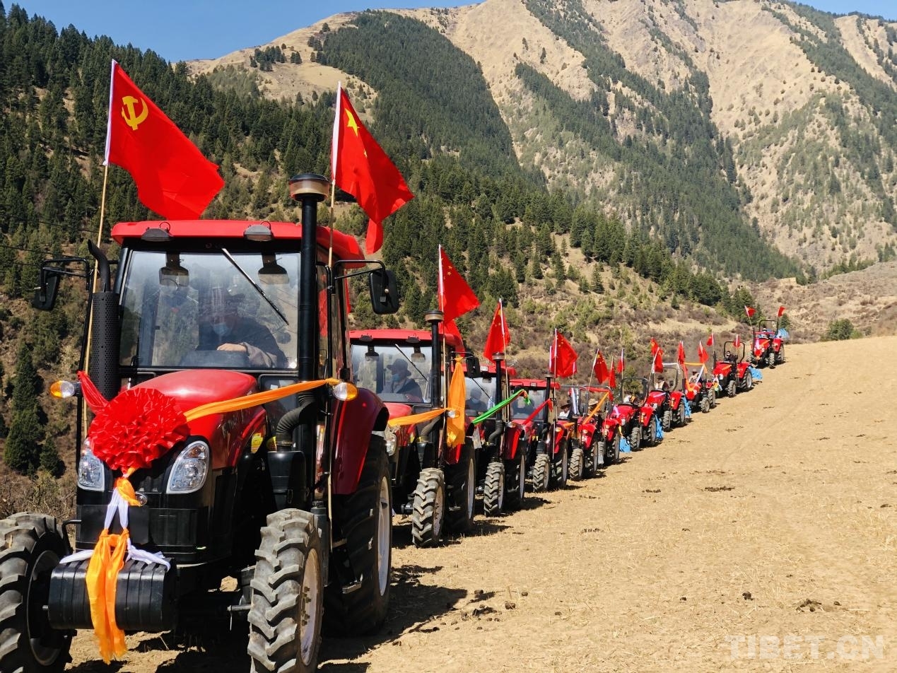 农牧民群众身穿节日盛装,相聚在农田里,端着预示丰收的黑青稞,捧着洁白的哈达,牵着耕牛,开着轮式拖拉机齐聚田间地头举行开耕欢庆仪式。