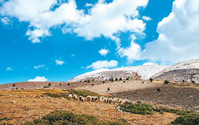 牧民的牛羊在塔公草原悠闲食草。李隆德 摄(人民图片)
