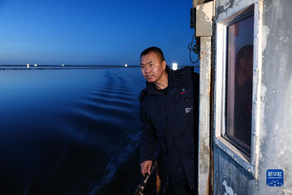 2月2日晚间,贺连福在水采船上巡检。新华社记者 刘金海 摄