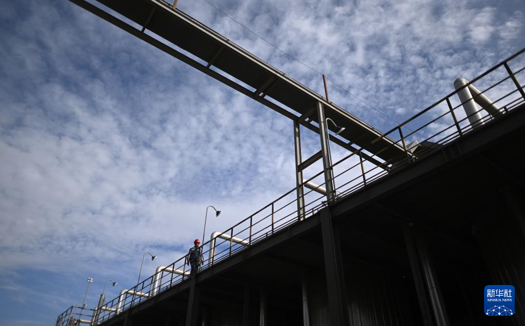 一名工作人员在青海盐湖蓝科锂业股份有限公司生产区内巡检(6月9日摄)。新华社记者 张宏祥 摄
