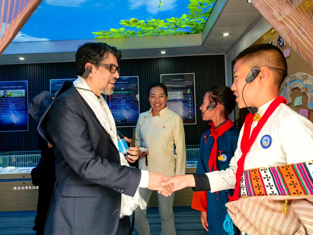 在长江源民族学校、村民家中……使节们与学生、村民等面对面交流。看到整洁明亮的教室和温馨舒适的学生宿舍,塞浦路斯驻华大使玛莎·玛夫罗玛蒂感叹:“当我与孩子们交谈时,我能直观感受到他们的自信和阳光。孩子们是我们的未来。这里的一切都是那么美好、充满希望。”