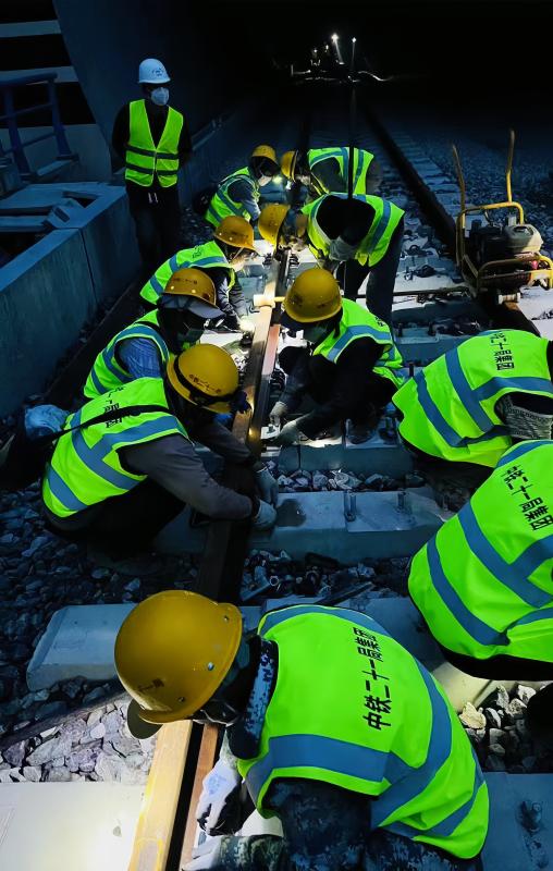 据中铁二十一局滇藏铁路丽香段项目书记崔献承介绍,铺设所用长轨为500米钢轨,由和谐-5机车、东风-8B机车运抵后,通过牵引车牵引、工人作业的方式完成铺设。预计7月15日将完成哈巴雪山隧道轨道的铺设工作。