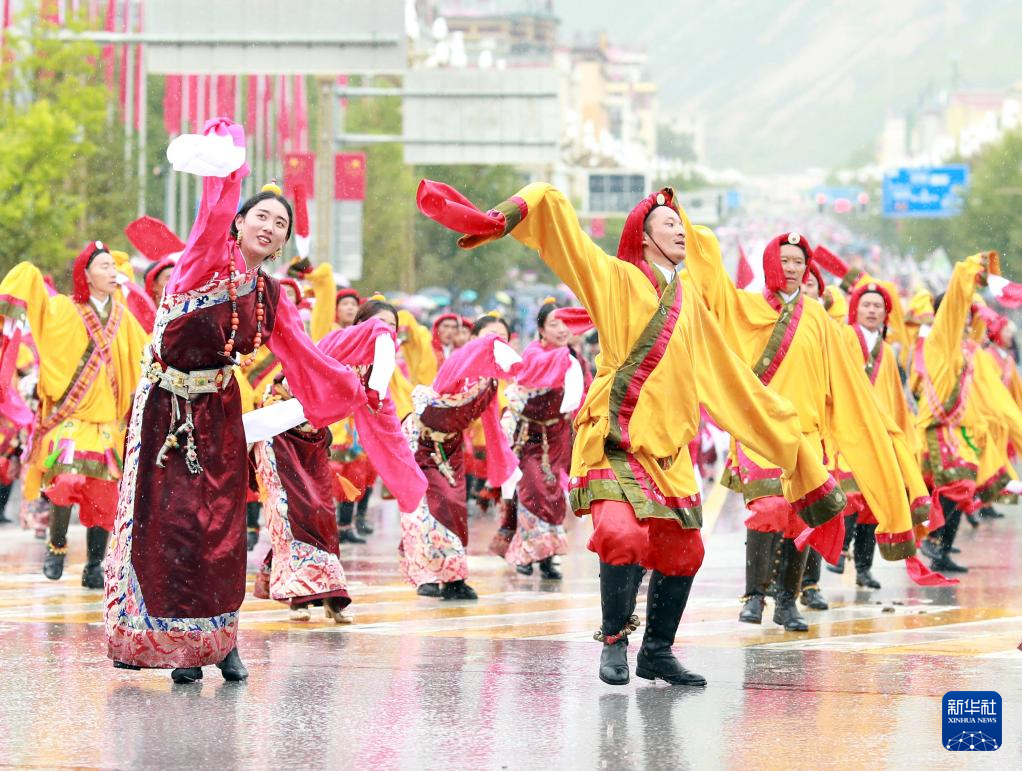 7月24日拍摄的“潇洒的康巴人”巡游活动现场。新华社记者 高巍 摄