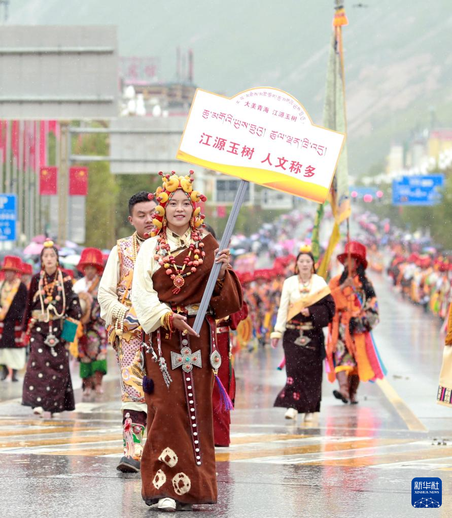 7月24日,“潇洒的康巴人”巡游活动在青海省玉树藏族自治州玉树市举行。多个方队进行巡游表演,展示藏族独特的民俗文化。