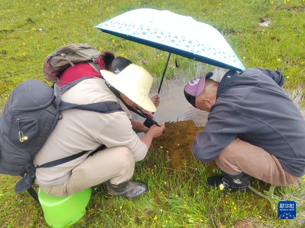 8月4日,科研人员在云南省迪庆藏族自治州香格里拉市普达措景区内拍摄高寒水韭。新华社 海仙 摄