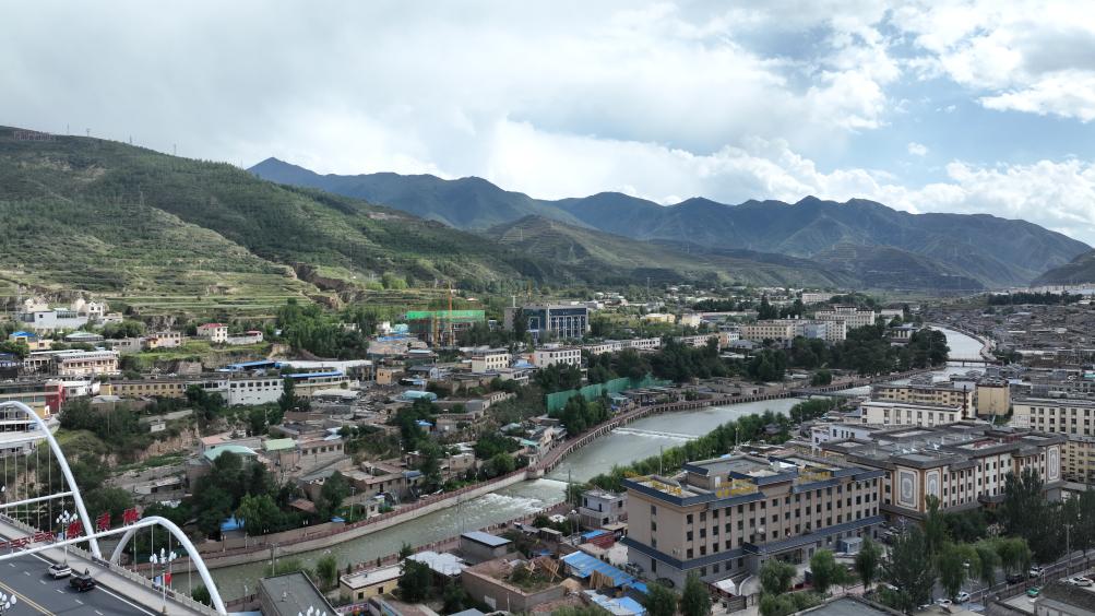 2023年8月24日,无人机拍摄的同仁市隆务河景色。新华社记者张宏祥 摄