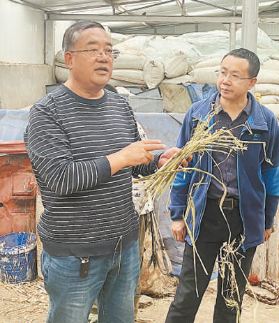 宋仁德(左)在给农牧民讲解冬季补饲知识。贾丰丰 摄