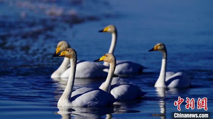 青海省海西州:天鹅遇上流凌 冬日的别样风景