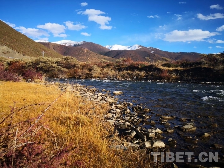 图为秋日的俄达门巴村,雪山相伴,流水潺潺