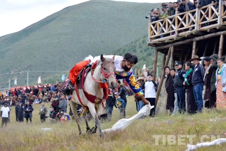 图为俄达门巴村赛马节,康巴儿郎拾哈达