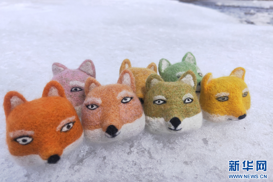 挑选牦牛绒、染色、塑形……在一双双巧手的努力下,一个个惟妙惟肖的藏狐挂饰初具雏形,几天后,这些挂饰将从高原卖向北京、广州等地。“现在毛毡手工艺品供不应求,姐妹们靠手艺能增加不少收入。”亚玛索那打包好一个毛毡杯垫,满脸笑容。