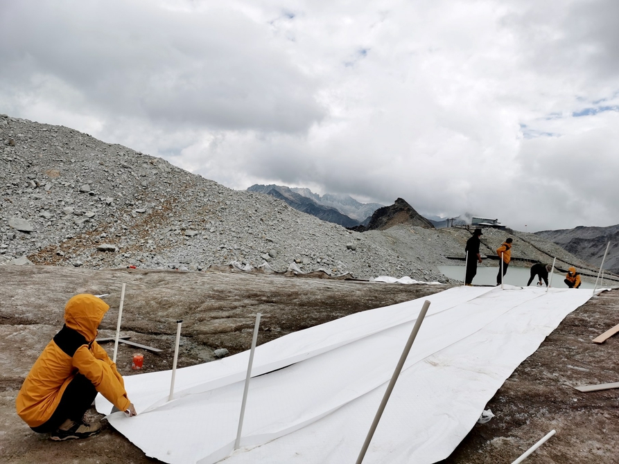 减缓消融速度 达古冰川盖上新“凉被”