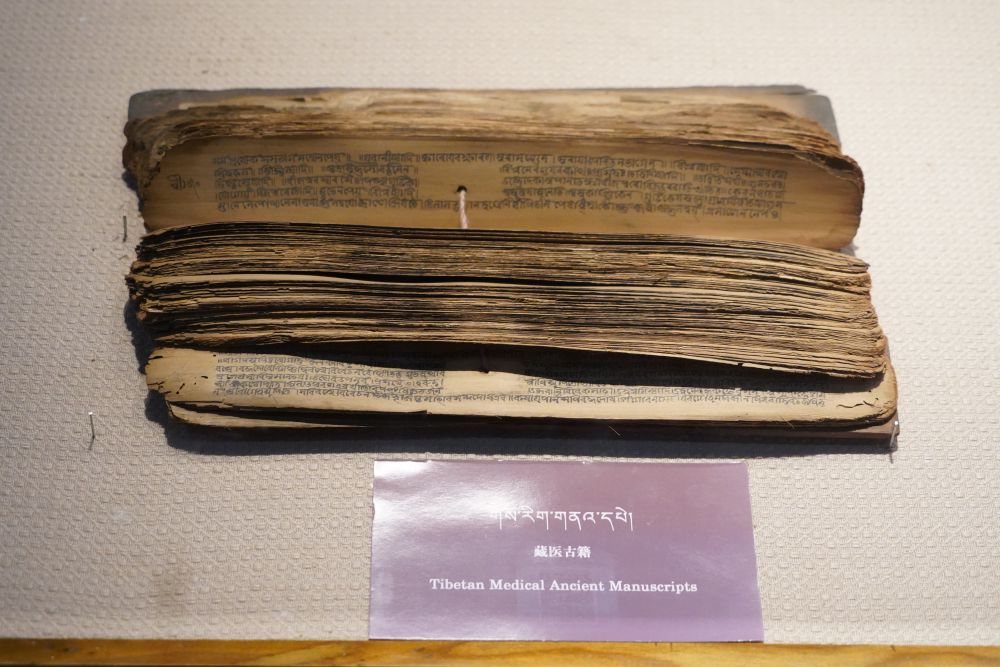 4月18日,在青海藏医药文化博物馆展厅内展示的藏医古籍。新华社记者 耿辉凰 摄
