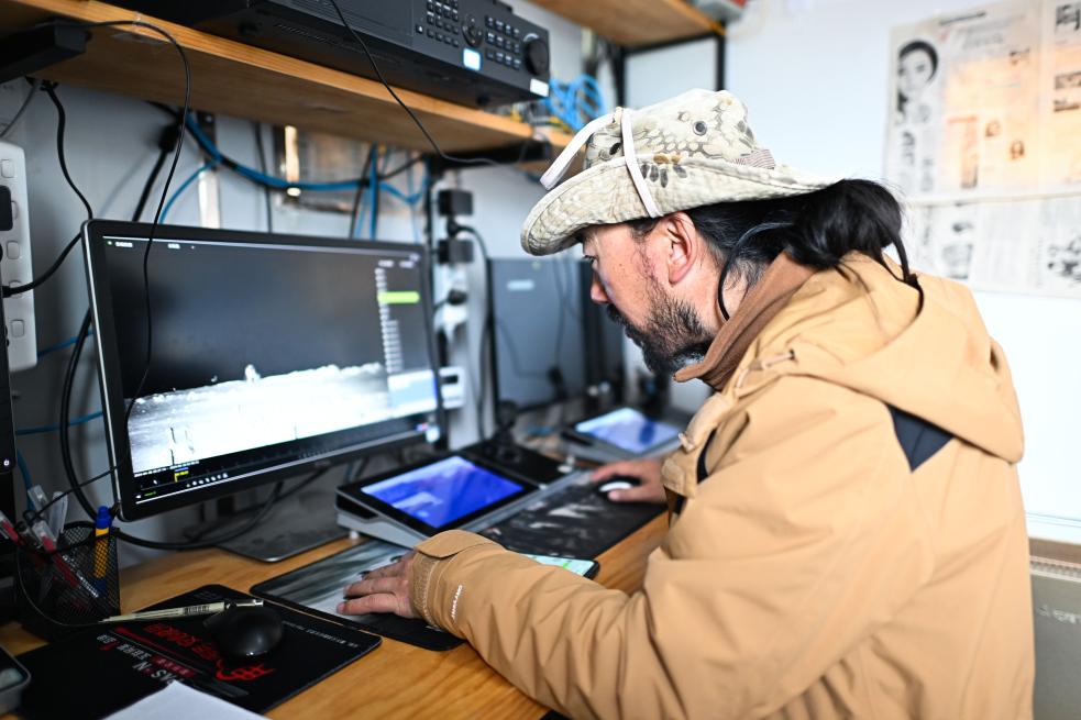 5月26日,在班德湖野生动物观测站,吐旦旦巴在查看红外相机拍摄的画面。新华社记者 张龙 摄