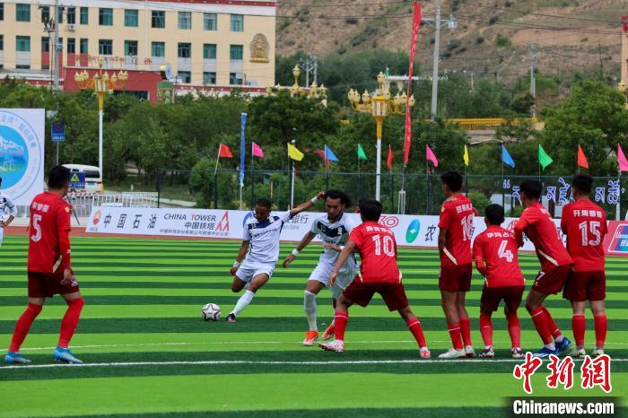 图为“大美青海·高原足球”超级联赛黄南赛区首场比赛。薛蒂 摄
