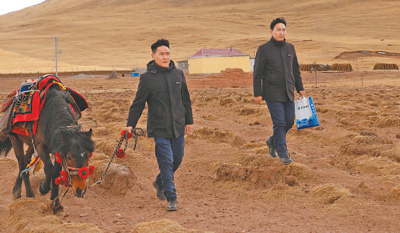 这里是青海省玉树藏族自治州曲麻莱县格欠村,伽马久美是曲麻莱县现代畜牧业专业合作社负责人。骑马前来的是曲麻莱县农商行的工作人员尕玛扎西和同事们,此行专门来对格欠村村民的“三牲贷”情况进行摸底。