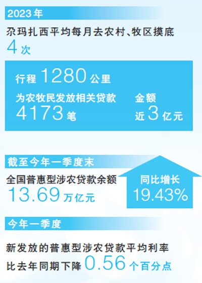 金融监管总局普惠金融司有关负责人介绍,今年以来,金融服务“三农”领域状况持续改善,涉农信贷余额实现较快增长,信贷支持力度明显加强。截至一季度末,全国普惠型涉农贷款余额13.69万亿元,同比增长19.43%,超过各项贷款平均增速10.26个百分点。今年一季度,新发放的普惠型涉农贷款平均利率降到了5.0%,比去年同期下降0.56个百分点。