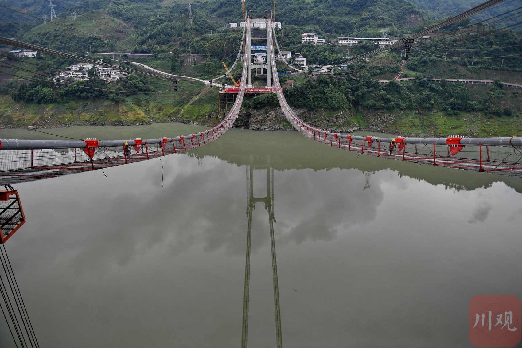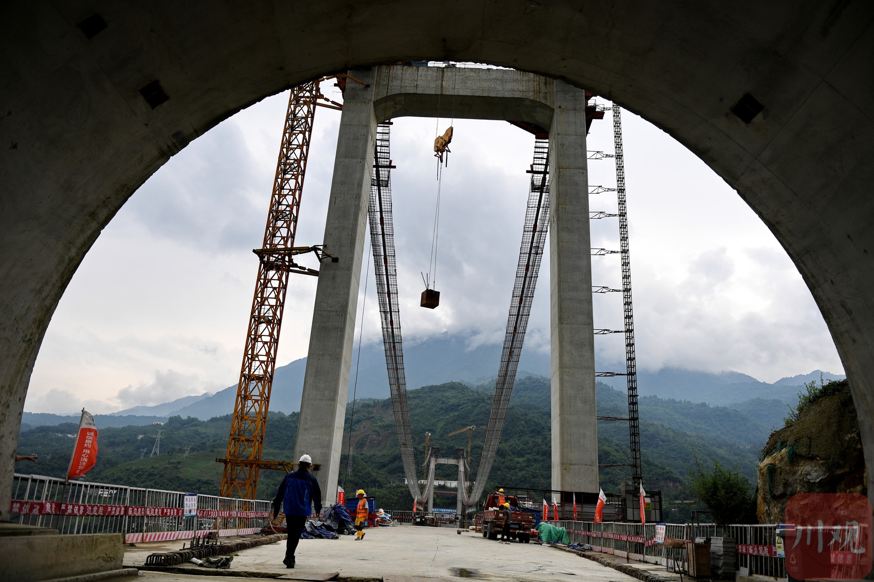 由中交路桥建设有限公司承建的国道317线友谊隧道至映秀段改建工程项目路线全长12.77公里,都江堰市境内约0.92公里,汶川县境内约11.85公里。其控制性工程紫坪铺特大桥是主跨485米横跨岷江紫坪铺水库的悬索桥,为“反括弧”空间线型主缆悬索桥,是阿坝州第一座悬索桥,也是全国最大跨径“反括弧”空间线型主缆悬索桥。其主缆上下游各设48根通长索股,单根索股长802米,每根索股由127根直径为5.3毫米的高强镀锌钢丝组成,目前已完成整个工程量的70%,预计今年主体工程完工。