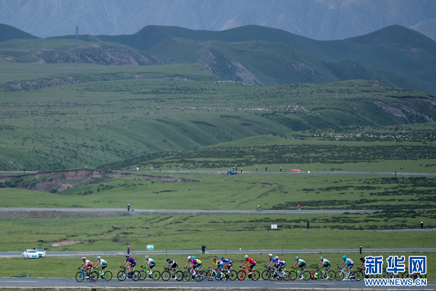 7月10日,2024第二十三届环青海湖国际公路自行车赛第四赛段贵德-共和比赛现场。新华网 潘彬彬 摄