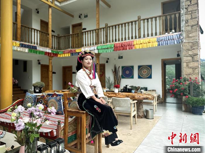 7月12日,宝生居民宿负责人格绒拉姆在民宿中。中新社记者 杨程晨 摄
