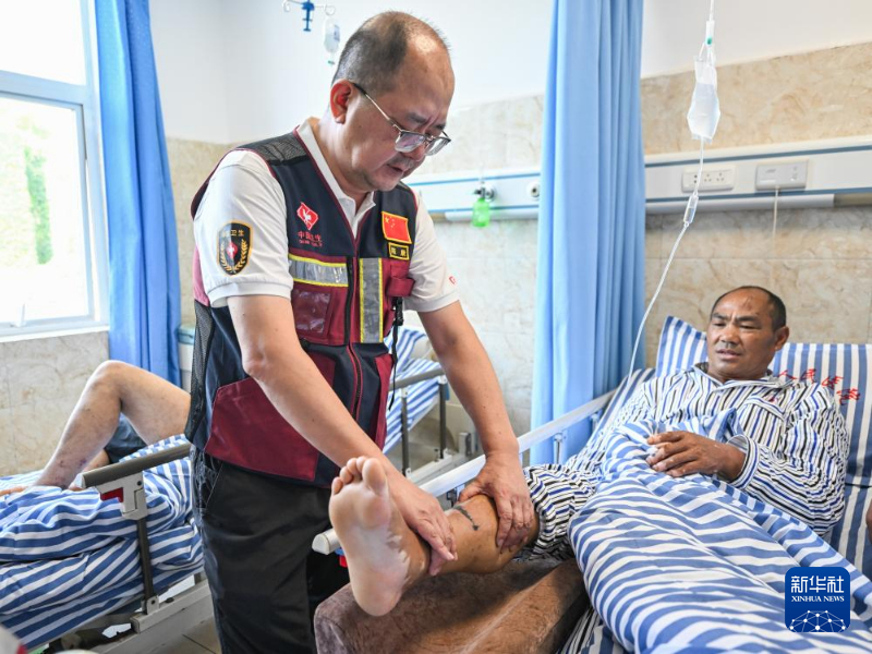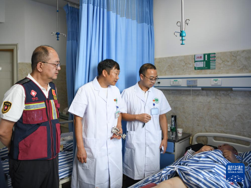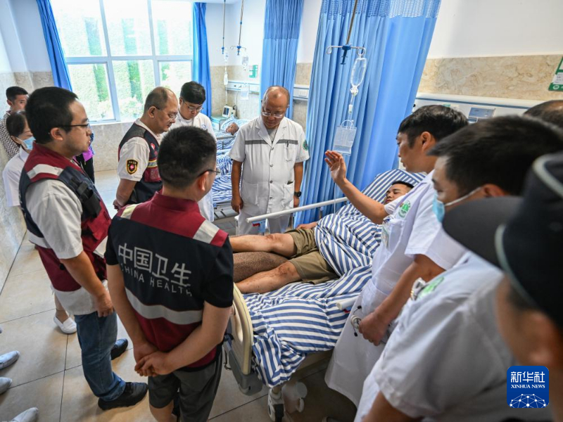 7月22日,在四川省雅安市汉源县人民医院,医疗专家在检查伤员伤情。新华社记者 王曦 摄