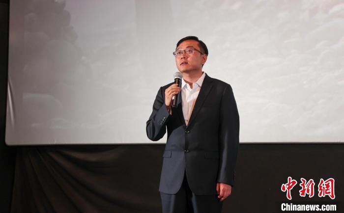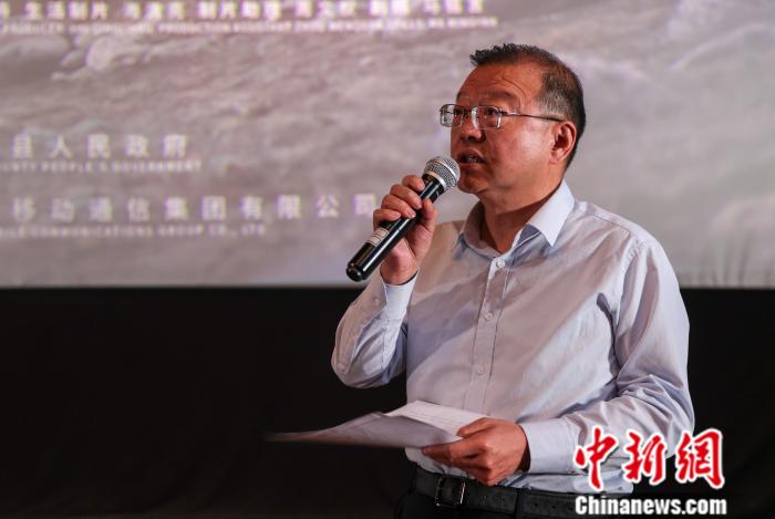 图为出品方代表、青海省果洛州委副书记、玛沁县委书记杨文渊讲话。薛蒂 摄