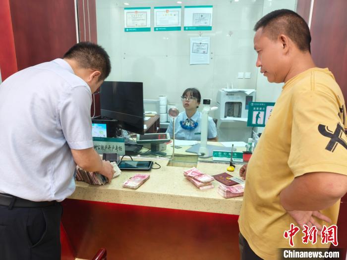 邓先生带着钞票来到银行网点。康定大渡河支行 供图