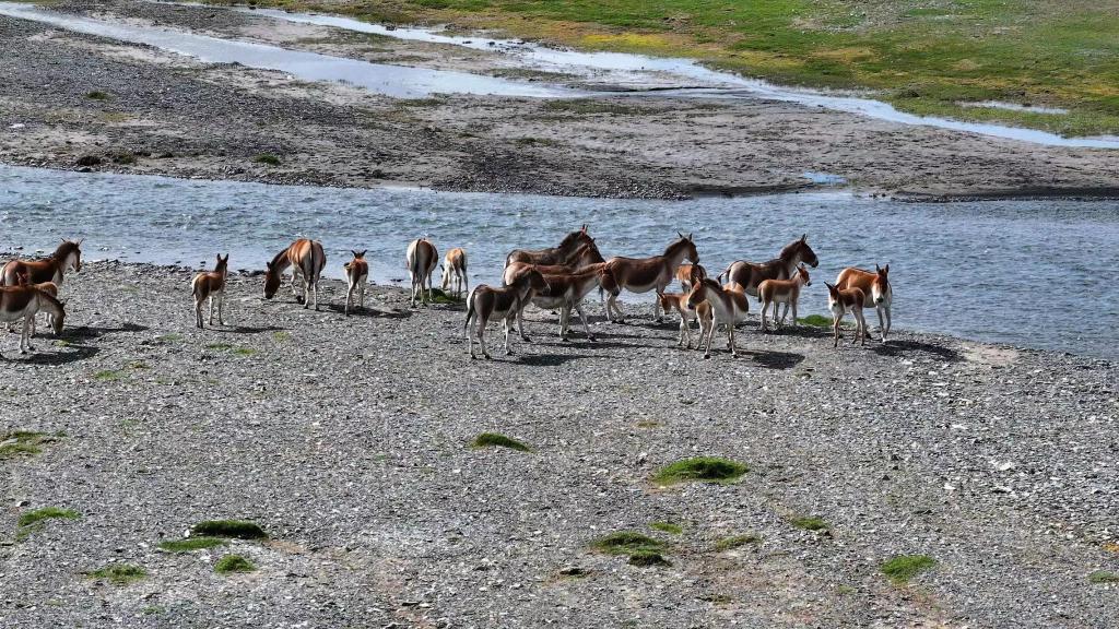 图为8月9日,在青海省玉树藏族自治州曲麻莱县境内拍摄的藏野驴(无人机照片)。新华社 昂江 摄