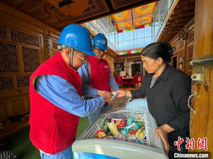 图为9月1日,国网青海电力三江源(黄化尖扎)共产党员服务队队员为用户分发便民服务卡。卫洁 摄