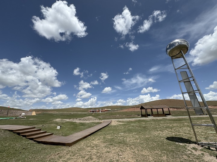 9月初的金银滩草场犹绿、白云低垂,宁静但有力地诉说着历史的巨响。