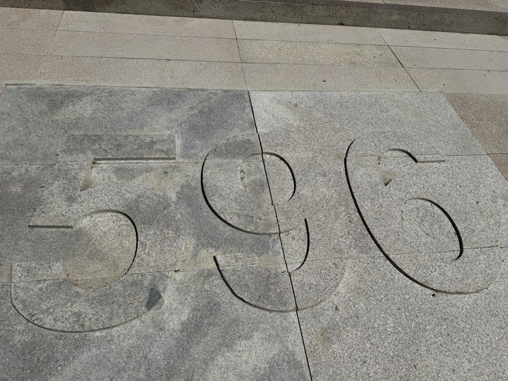 原子城纪念馆地上“596”字样,这是第一个试验性原子弹产品代号,对应苏联毁约的日子,即1959年6月。新华社 潘旭 摄